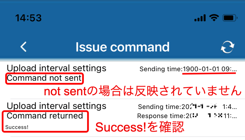Success!になっている事を確認してください。※コマンド送信後瞬時にSuccessが表示されるわけではなく、数十秒程度の時間差があります。